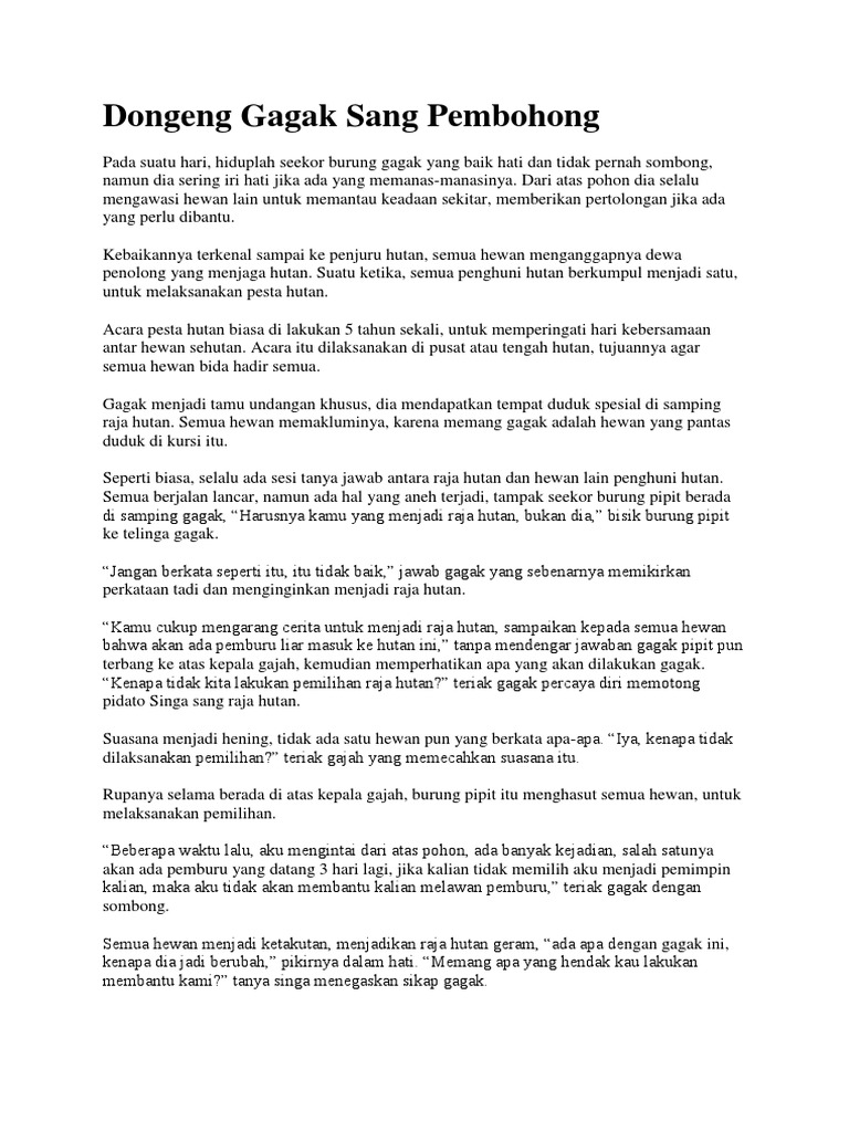 Materi B Indo Kelas 2 T3 St4 Gagak Sang Pembohong Pdf